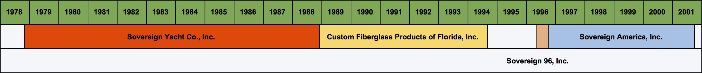 The owner of Custom Fiberglass products of Florida, Inc. was a portly man named Robbie Bowen. The number of Sovereign boats built by Custom Fiberglass Products of Florida is unknown but according to Steeg, the company did introduce a new model, the Sovereign 20.