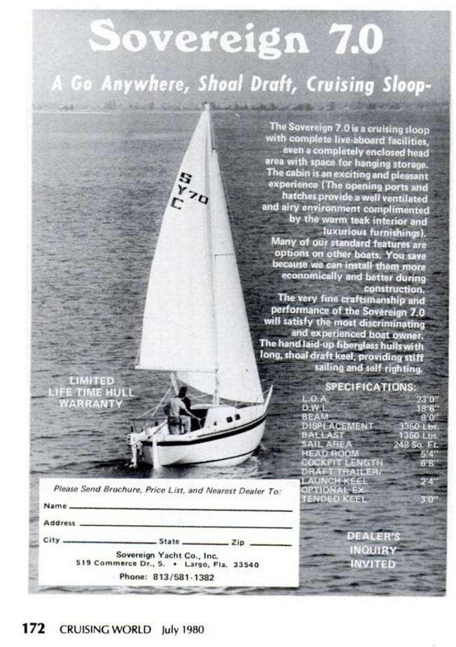 Information about the Sovereign brand of sailboats