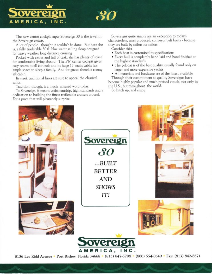 Information about the Sovereign brand of sailboats